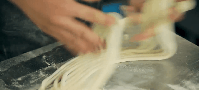由于拉面师傅在制作牛肉面时使用的是同样大小的面团,所以越细的面条必然长度越长,给人一种“数量很多”的错觉,实际上直径越大的面条消化时间越长,就越“顶饱”。