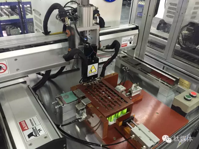 机器正在并联焊接电芯