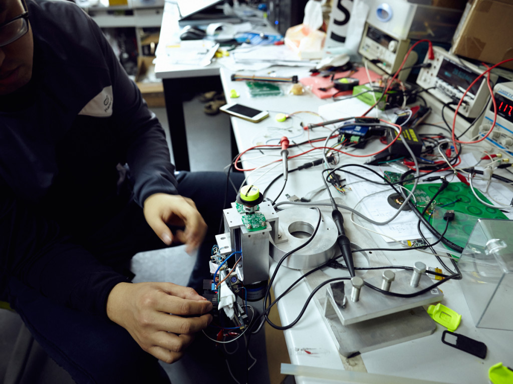在旅程的最后,我来到李大维的新车间,当时他正在跟一个创业团队面谈。那个团队的成员之一李欧(Lionello Lunesu)是荷兰籍意大利人,他已经在中国住了八年,还有拉丁裔的Berni War。他们正在检测附近工厂寄来的最新原型。那个小设备能够给你提示电脑和手机的新消息,就像一个能够摆在桌上而不是戴在手上的Apple Watch。「大维觉得,我们做得还不够开。」李欧说。