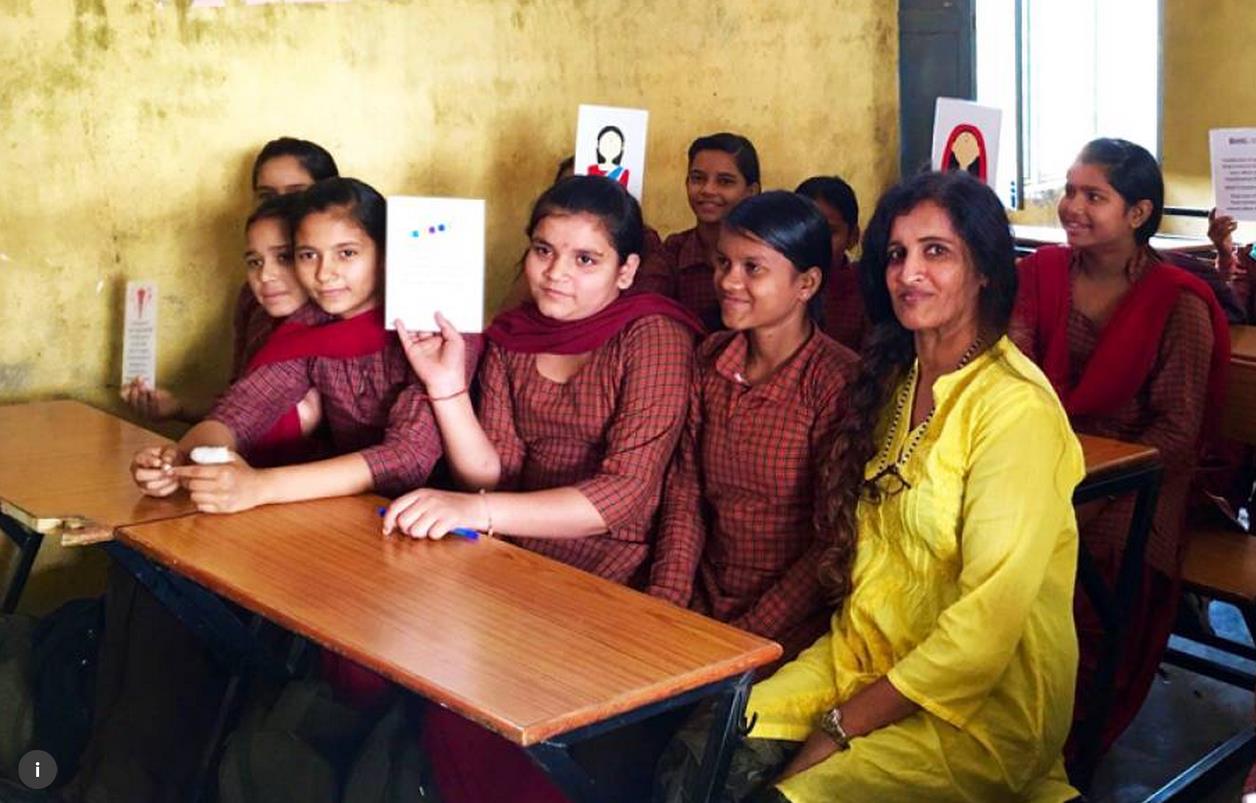 本图为公益人士到印度学校为女生讲解生理卫生知识