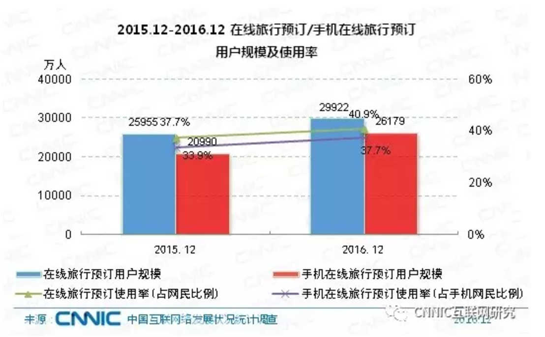 2015.12-2016.12 在线旅行预订/手机在线旅行预订用户规模及使用率