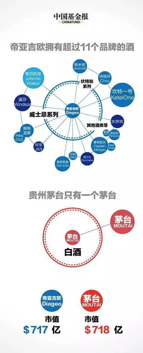 茅台可以说品牌不及帝亚吉欧,营业收入也比不上后者,那又是如何能让市值突破715亿美元成为烈酒界全球第一呢?