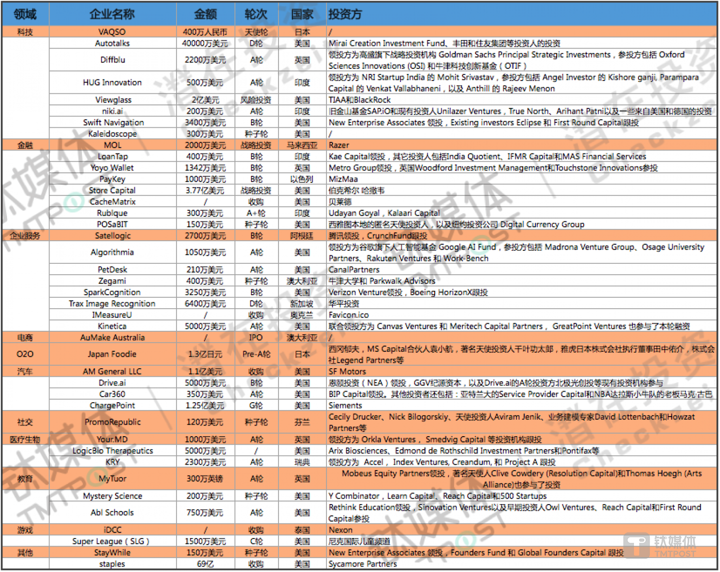 ✔️. 本周钛媒体Pro全球创投数据库TMTBase总计收录国外重大融资事件41起。