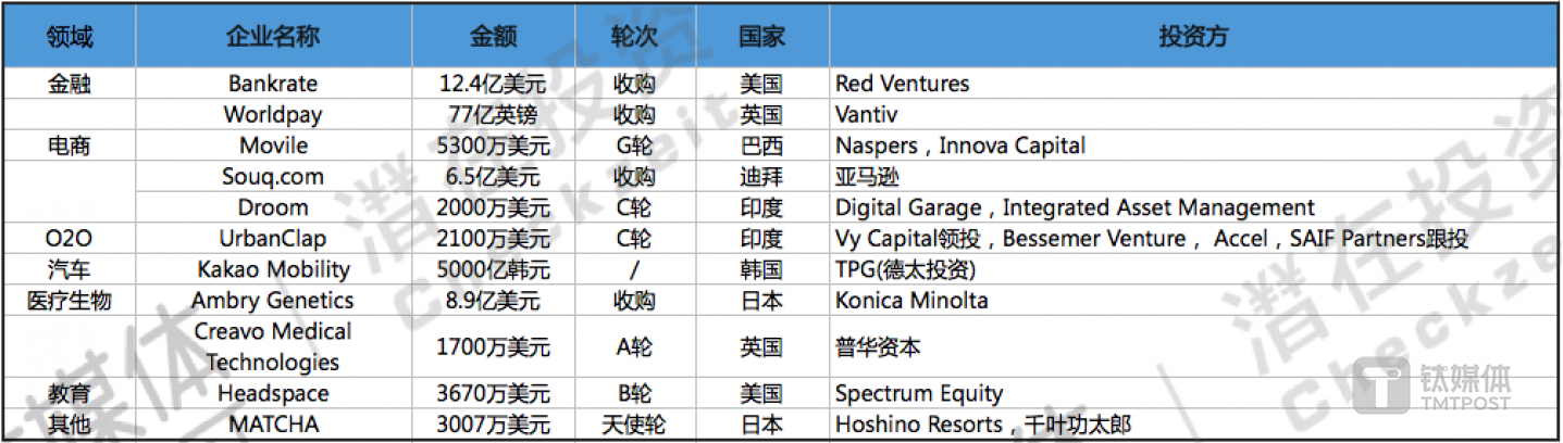 ✔️. 本周钛媒体Pro全球创投数据库TMTBase总计收录国外重大融资事件32起。