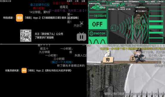 《薛定饿了么》以二次元鬼畜风格为《致命的分身》,脑洞大开的演绎了万维钢的《量子力学的“人性”》;笔者在朋友圈也看到有95后分享B站上关于《逆转商人》被起诉反败为胜的短视频来诠释科斯定理,生动且准确。