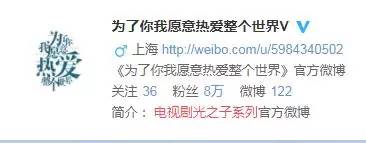 ▲为了你我愿意热爱整个世界的官方微博原本名为电视剧光之子系列