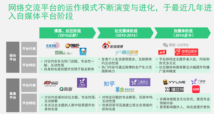 报告说的是,2010年以前是博客社区阶段,综合平台代表天涯、猫扑、豆瓣讨论的多是热门话题,专业性一般,医疗不是重点讨论领域,所以产生不了医疗大V。