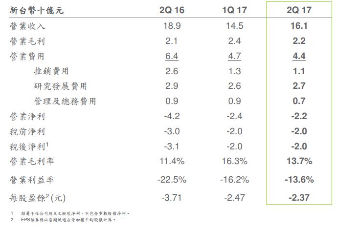(来源:HTC 2017年第二季度财务报告)