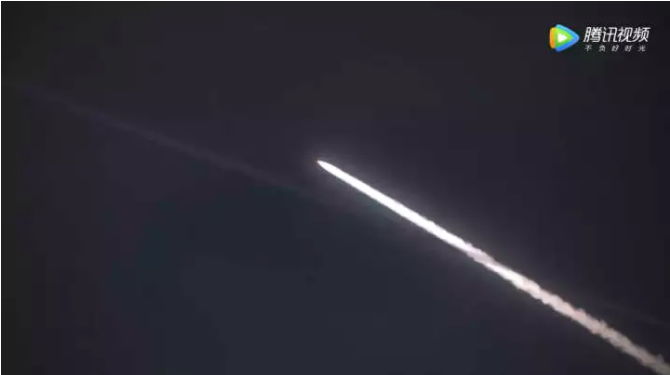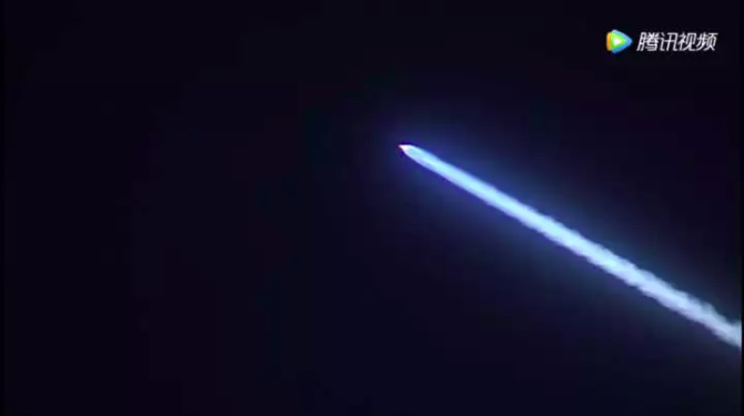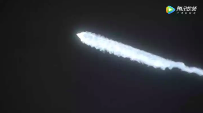 仔细分析了完整版本的高清视频,竟然发现这很可能是月亮的影子。我们先看全景图,当火箭飞行到后半段,在前方竟然有一弯明月。