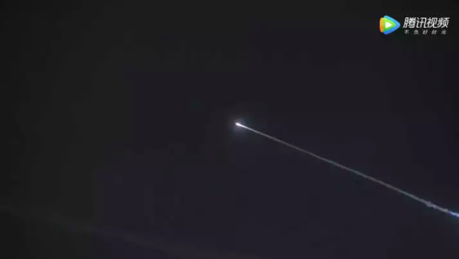 但不久之后,又一个亮点在前方出现,并且光束比之前粗多了。放大看,颜色带着点蓝色,头部呈现出明显的锥形。这其实是第二级火箭发动机的尾焰产生的特效。