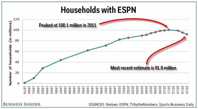 近年来,ESPN用户数量的下滑趋势