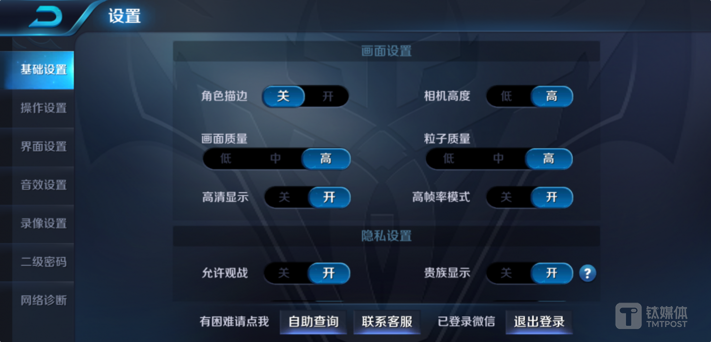 王者荣耀同样开启高画质、高帧率及高清显示