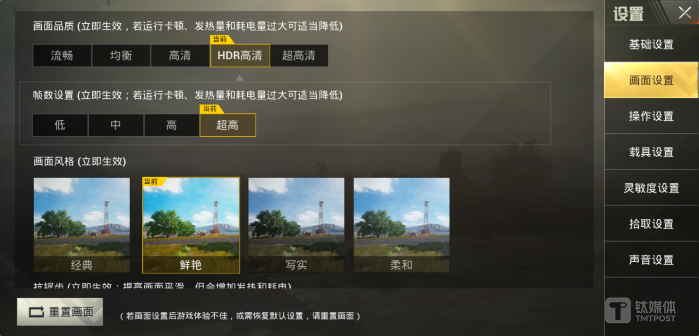 刺激战场最高运行HDR高清画质+高帧率模式