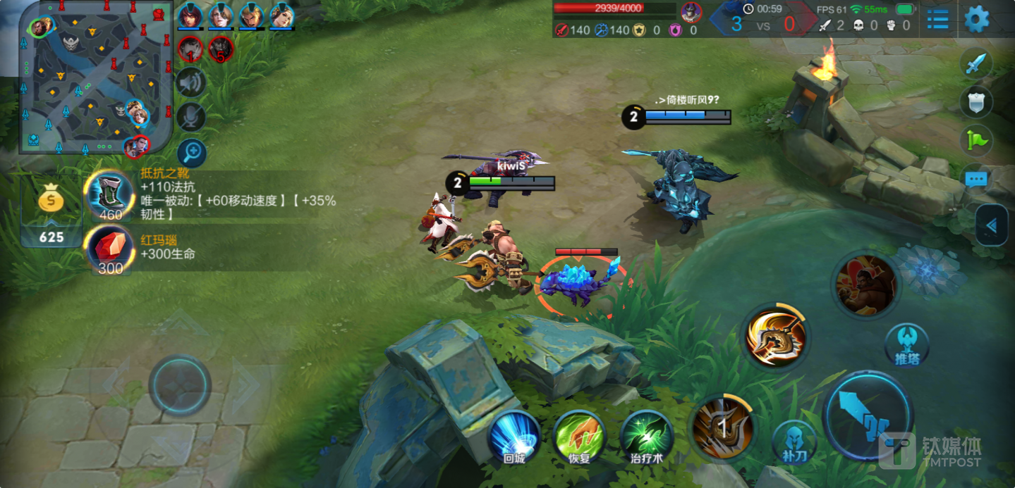 经过4场对战的体验,坚果R1在玩王者荣耀过程中的反应速度还是可以的,技能释放、局内文字对话切换等动作都比较流畅,没有延迟卡顿出现。