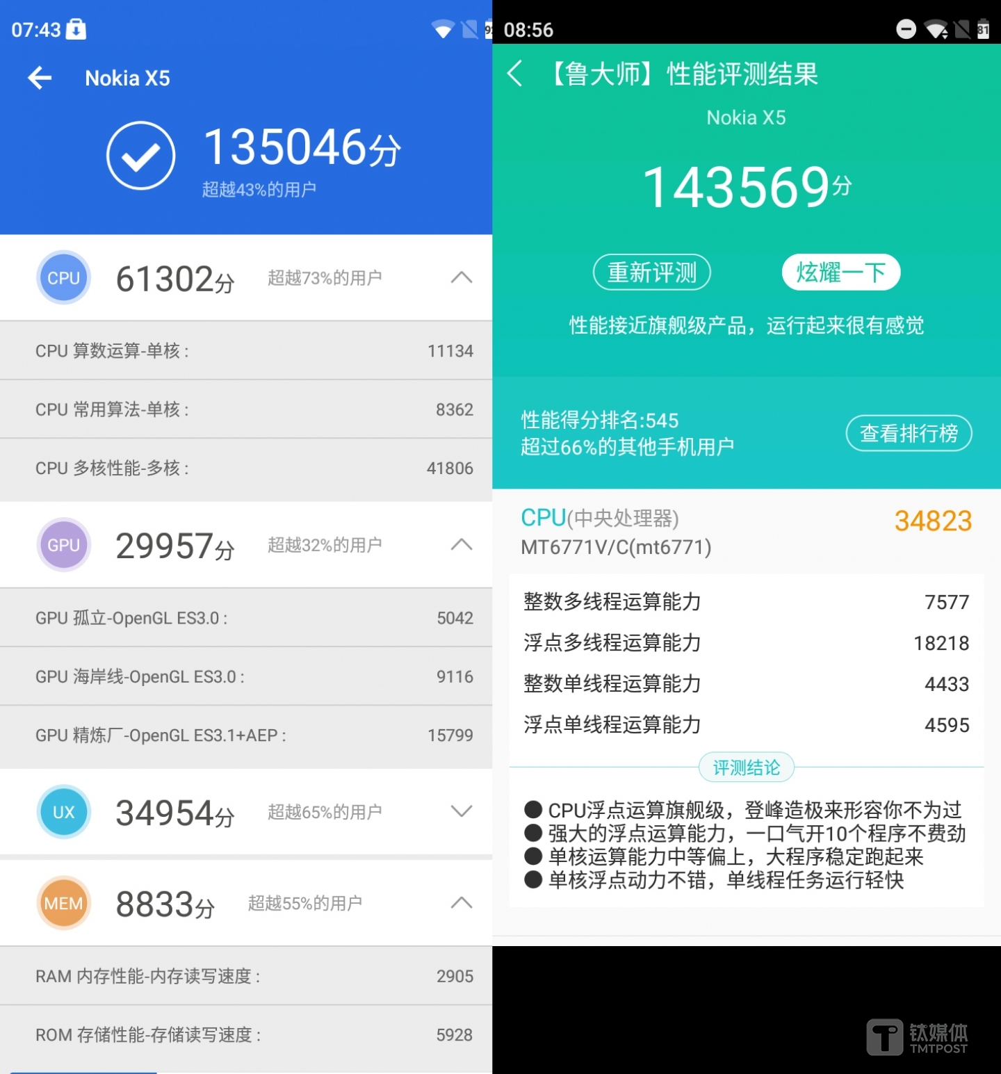 目前,诺基亚X5有3GB+32GB和4GB+64GB两个版本,前者售价仅为999元,后者为1399元。单从硬件配置和售价来看,诺基亚X5成功将Helio P60的售价压缩到千元水平,对于消费者来说性价比还是非常不错的。