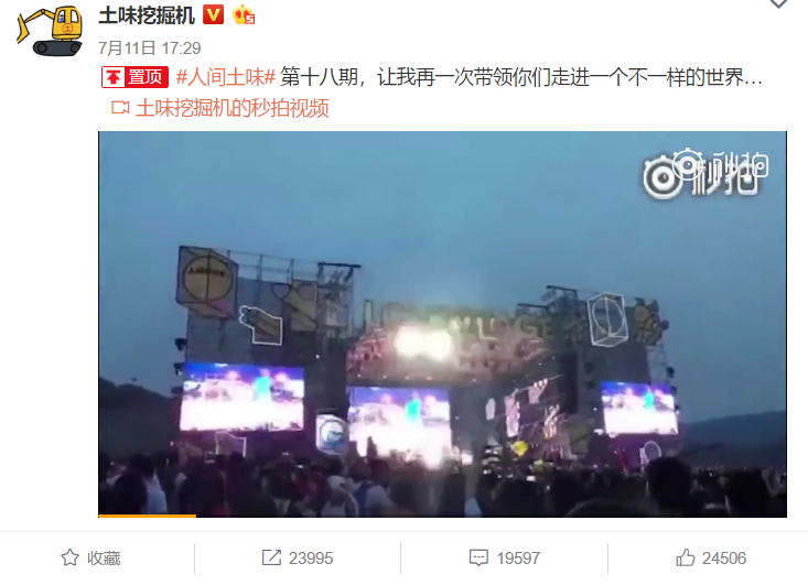 2017年3月,一个名为“土味挖掘机”的微博号开始将快手上的土味视频配上略带嘲讽的文字说明搬到微博,之后他还创造了名为“人间土味”的话题,以与“人间幺蛾”相似的形式,将反响较好的土味视频剪辑到了一起。同样也引起了微博网友的好评,尤其是连续做了十期后,每期都可以收获到上万的评论与转发。