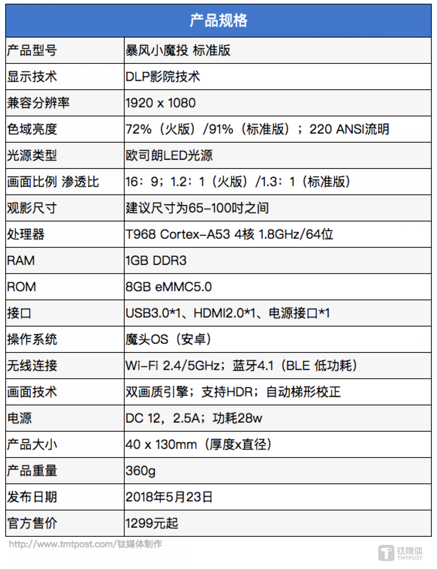 目前,小魔投一共有标准版和火版两个规格,其分辨率、流明以及硬件都没有改变,只是在色域和渗透比上稍有差距。售价方面,小魔投标准版售价为1799元,火版售价为1299元,与动辄2000元以上的微投竞品来说,价格很有优势。
