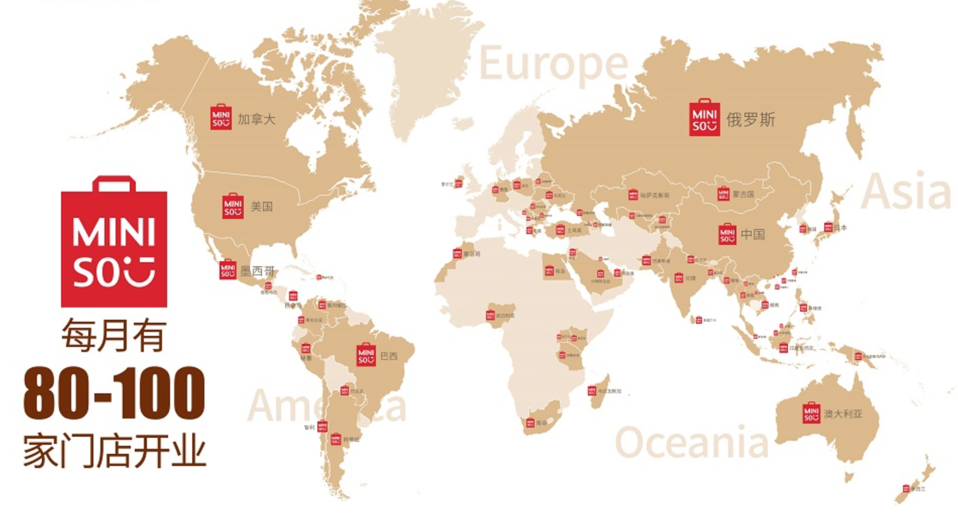 装成日本外宾的MINISO(名创优品)在今年1月公布,全球店铺数超过2600家,遍布60多国。