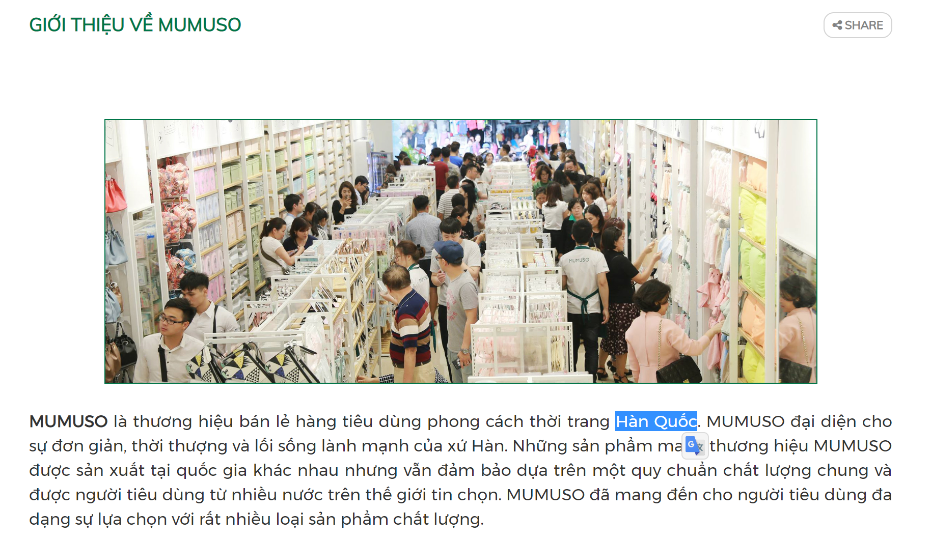 (MUMUSO越南的网站介绍,“Hàn Quốc”意为韩国)