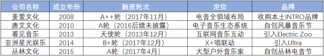 国内主要电子音乐厂商融资情况