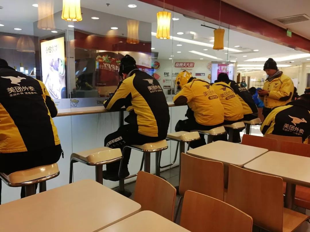 下午四点半,配送员坐在一家餐厅内休息