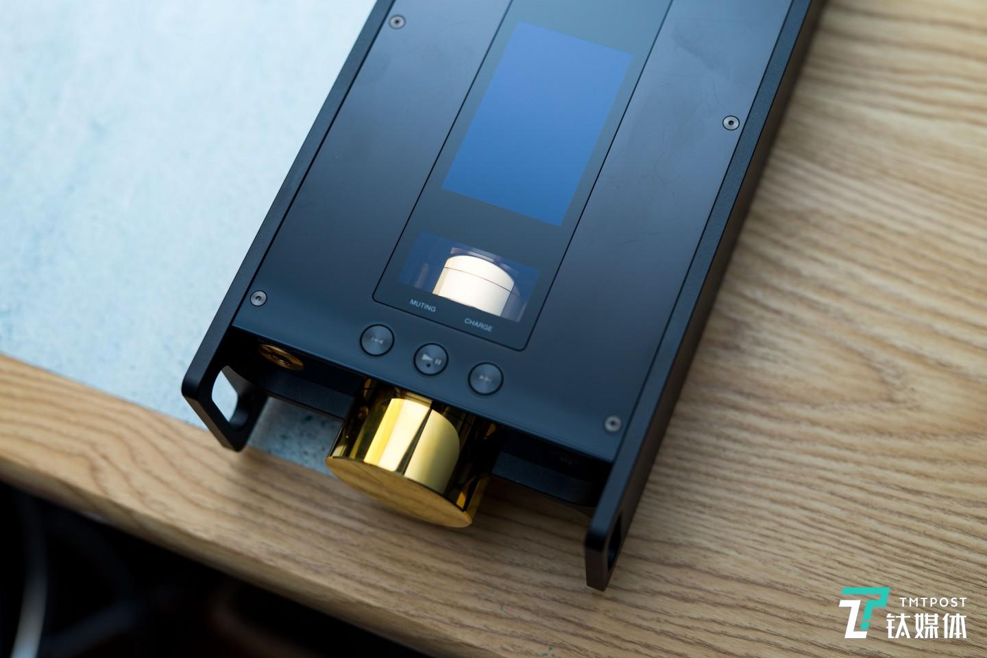 正面非常引人注目的金色转盘也是索尼专门为DMP-Z1打造的硬件之一,通俗来讲它就是个音量调节旋钮,那既然是个普通部件为什么要做的这么大?我相信只要转动过一次的人就会明白,从使用层面来说它带来了更加细致的调节能力,每一个段落的阻尼感显著增强。