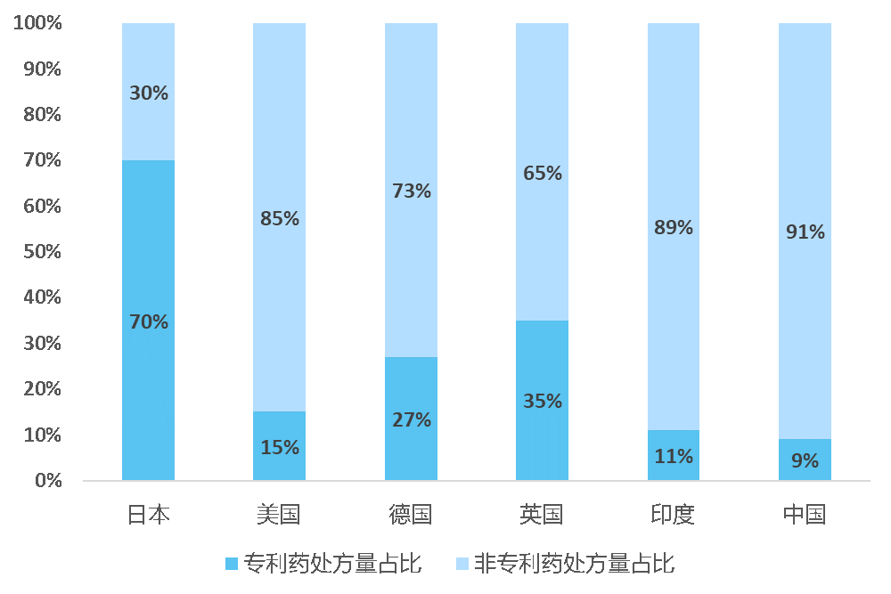 从全球来看,生物药占比持续提升,且均为治疗性用药;在我国,过期专利药、中药注射剂及辅助用药、抗生素占比过高。