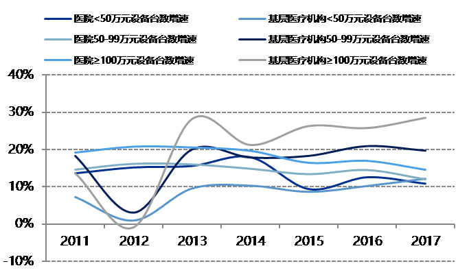 而随着分级诊疗的持续推进,基层医院尤其是县级医院进入快速发展期,基层医院的医疗器械行业有望受益扩容。