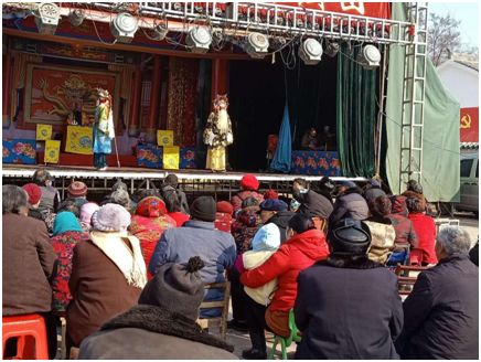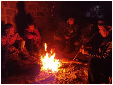 原来村里有流动电影放映,放的是老电影,现在村里看的人少,放映队也很少来了。老人们的文化生活,一年一次的戏班子演出,成了最隆重的日子。当村里的年轻人玩起了快手抖音不亦乐乎时,冬日的夜晚,老人们最开心的是围在一起烤火,聊天。