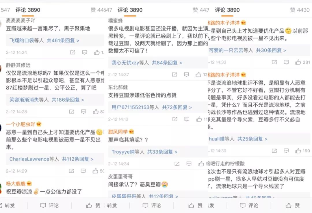 从大年初六开始,陆续有网友在微博、知乎、虎扑上爆料称,自己在《流浪地球》豆瓣词条下点赞的评论,一天之后莫名从高星变成了一星,且点赞无法取消。随即,“《流浪地球》豆瓣评分持续下滑”、“《流浪地球》遭恶意攻击”等话题开始在舆论中发酵。