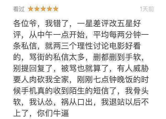 该删除了评分的用户,也在豆瓣上表示,“现在整个豆瓣背的骂名,其实从头到尾就我一个人做了而已”,并不存在大量高星改低星的情况,且其“只是为了表示用户有一星的自由而改的分”,并没有收费。