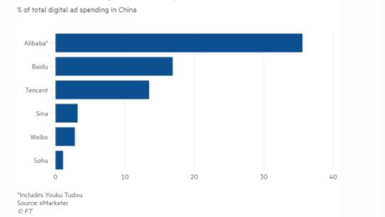 代表线上广告企业的市场份额(摘自金融时报)