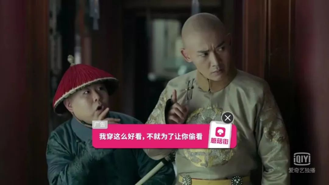 这类广告往往伴随着剧情的发展,在合适的场景下出现。比如《延禧攻略》中出现了皇上浑身皮肤发痒难受的场景,就出现了“999皮炎平”的广告,浮动于视频画面上,类似于创可贴。