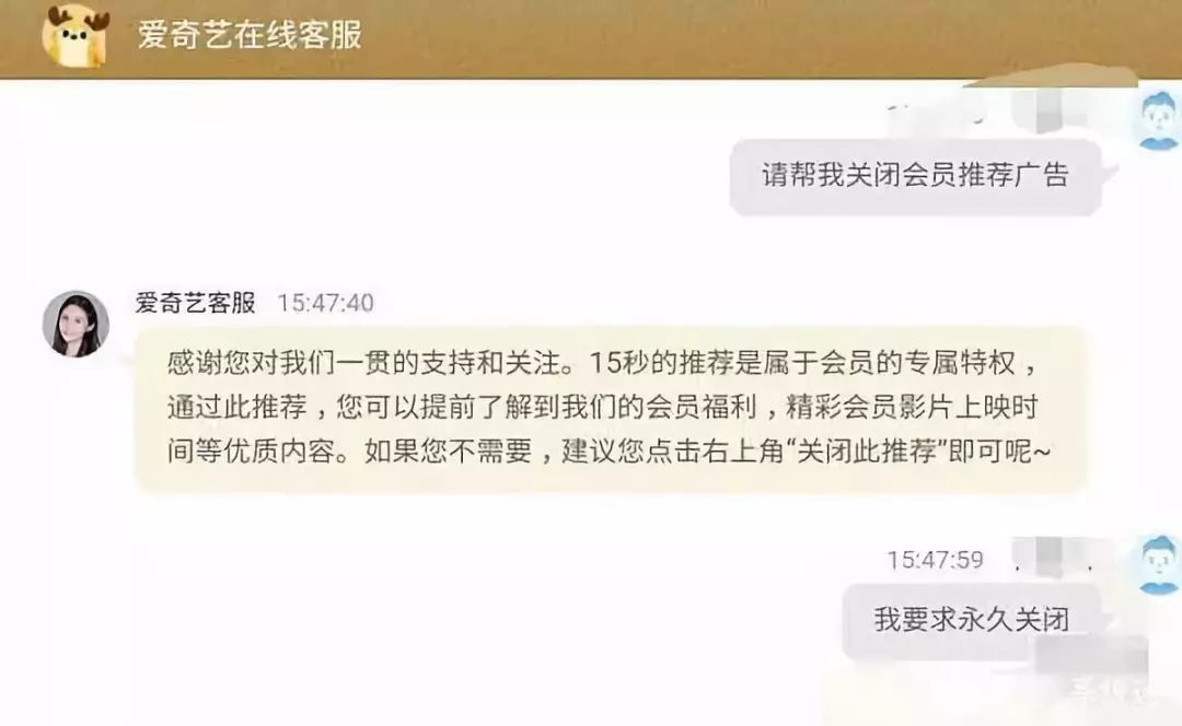 “我实在不明白,不都说会员免广告吗?怎么我还需要点击关闭。”小高不明白,因为不想看广告购买了爱奇艺的一年会员,到头来还是免不了广告的烦恼。