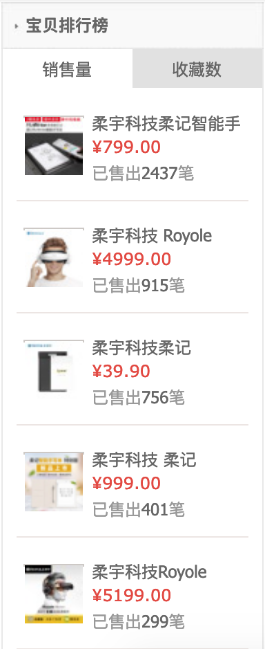 在最能体现市场销售状况核心渠道——京东商城上,其官方旗舰店销售的产品为四款,销量最好的智能手写本显示有6300+评价,其余产品都在100+或200+。而在天猫的柔宇数码旗舰店里,两款柔记智能手写本显示合计售出2800多件,其余的VR一体机整体销量不过1200+。