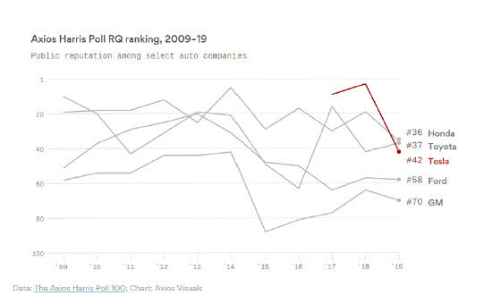 我们认为,特斯拉需求最近下降的另一个主要原因是消费者对特斯拉品牌的认知大幅下降。公众对特斯拉品牌的看法已经恶化。