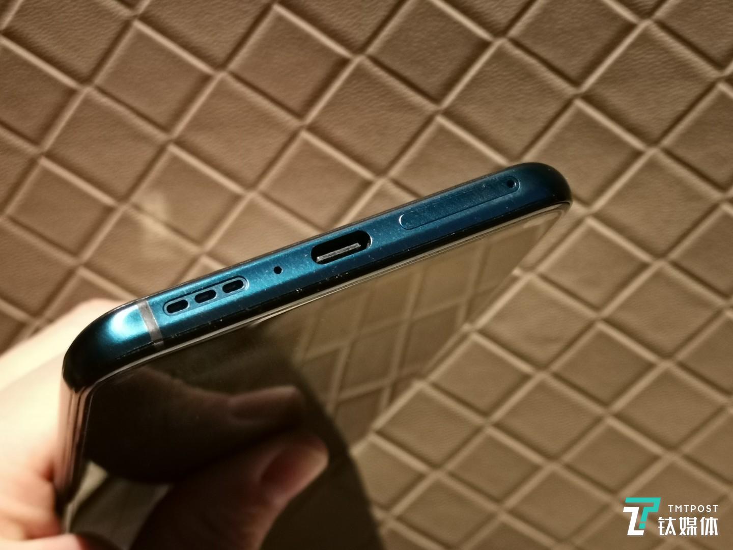 在机身接口方面,这次OPPO Reno 10倍变焦版取消了3.5mm接口,机身底部只有一个Type-C充电接口,随套装官方附赠Type-C与3.5mm接口转换器。