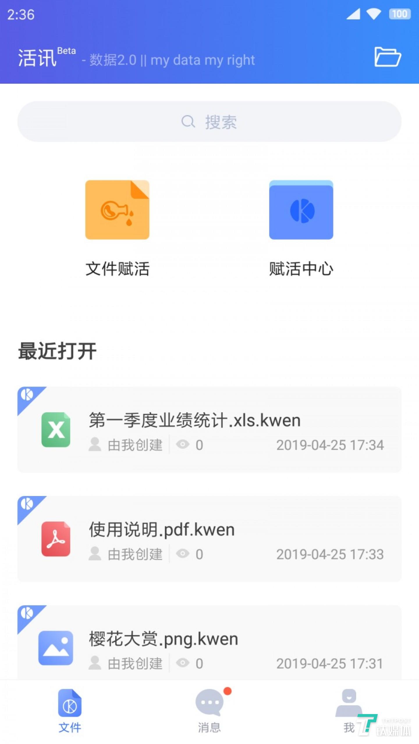 赋活后的数据,可以通过邮件、微信等发送,但文件跟拥有者的关系永远不会断,相当给数据加上拥有者的“DNA”。