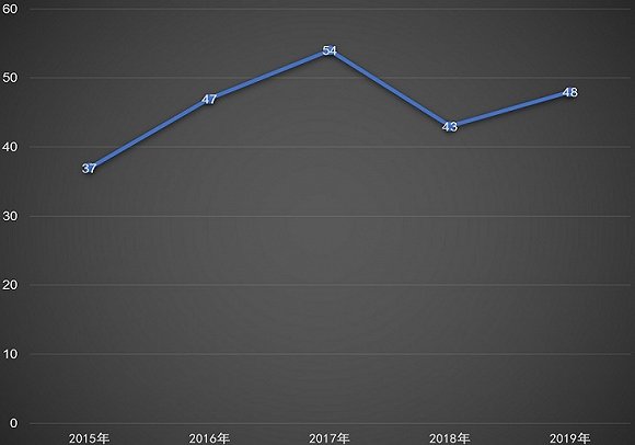 2015年至2019年A股每年新增且首次*ST的公司数量变化 数据来源:界面新闻研究部