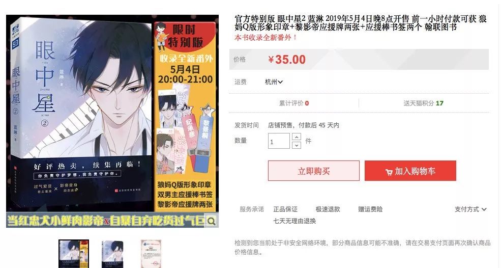 在淘宝某书店预售的耽美作者蓝淋《眼中星2》