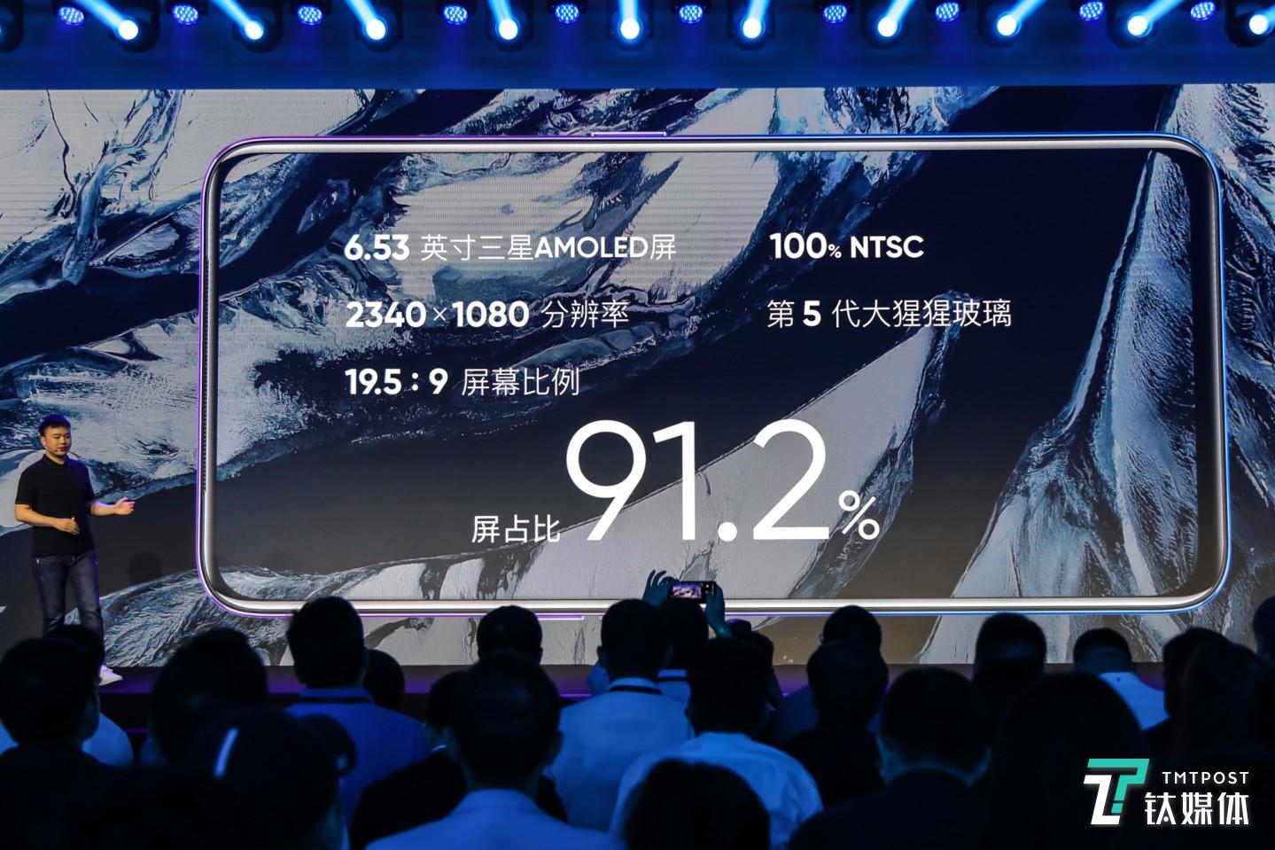 外观设计上,realme X采用了6.53英寸的FHD+级别的AMOLED屏幕,19.5:9与超高的91.2%屏占比带来全屏体验。同时NTSC色域达到了100%,显示效果细腻准确。盖板玻璃也选用了第五代大猩猩玻璃,更加坚固耐用。