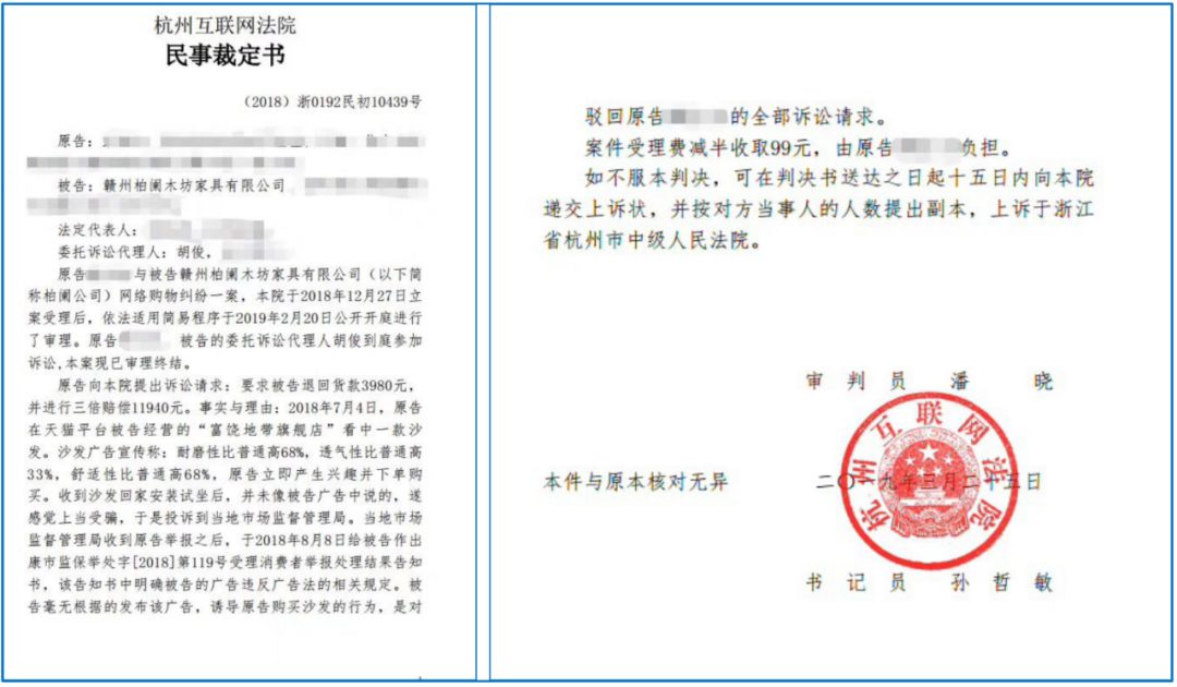 去年7月份,有买家在任岩的淘宝店铺购买了一款沙发,但声称安装试坐后并不舒适,认定任岩店铺的产品描述内容——“耐磨性比普通高68%,透气性比普通高33%,舒适性比普通高68%”是在诱导购买,对消费者存在欺诈。买家要求店铺退回货款3980元,并按照三倍金额(即11940元)进行赔偿。