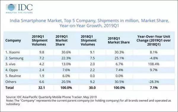 根据市场调研机构Canalys的报告,在国内市场,2019年Q1小米是国产手机厂商中跌幅最大的一家,出货量为1050万部,同比下滑13%,市场份额从13.3%下降到了11.9%。