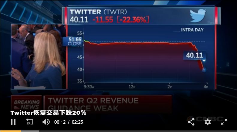 主持人需要实时盯着断崖式下跌的Twitter股价