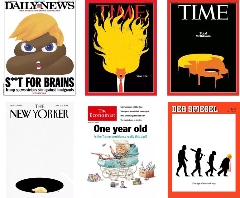 特朗普执政一周年各家媒体的封面