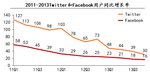 2014年前Twitter的用户增长速度是Facebook的两倍