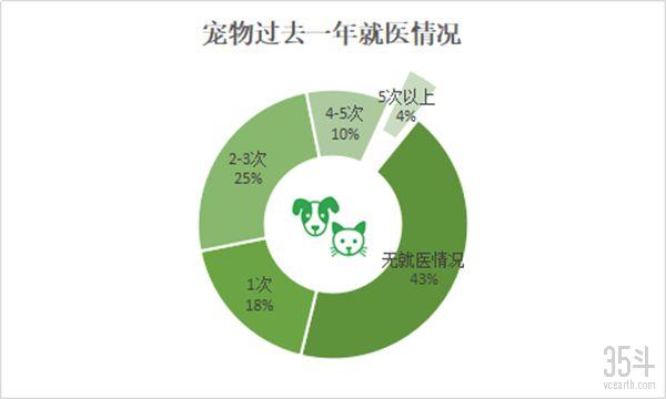 极光大数据的调研结果显示,过去一年有过就医情况的宠物占比超过了55%,其中2-3次达到25%,4-5次占到10%。