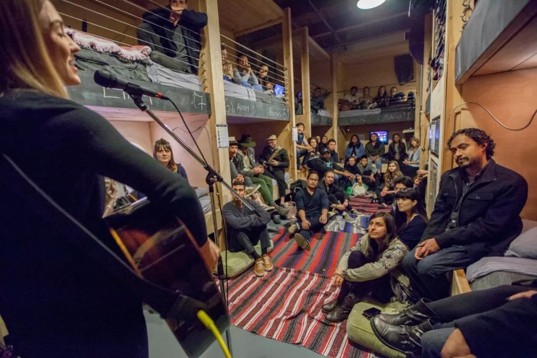 Beck希望所有人彼此敞开,空间开放明亮,鼓励租客之间互相交流。她讨厌胶囊旅馆,比如在诞生了“社畜”文化的日本,觉得那才是反乌托邦。胶囊旅馆每个人有自己的小隔间,拉起帘布,人们安静地蜷缩在自己的铺位上,把自己和所有人、全世界隔绝开。