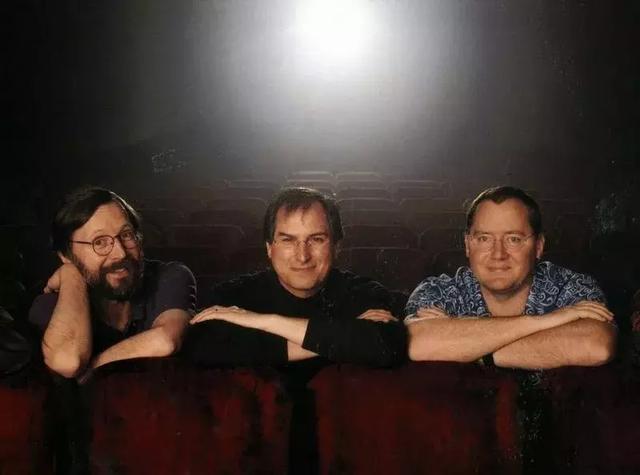 皮克斯的三位创始人:艾德·卡特姆(左)史蒂文·乔布斯(中),约翰·拉塞特(右)