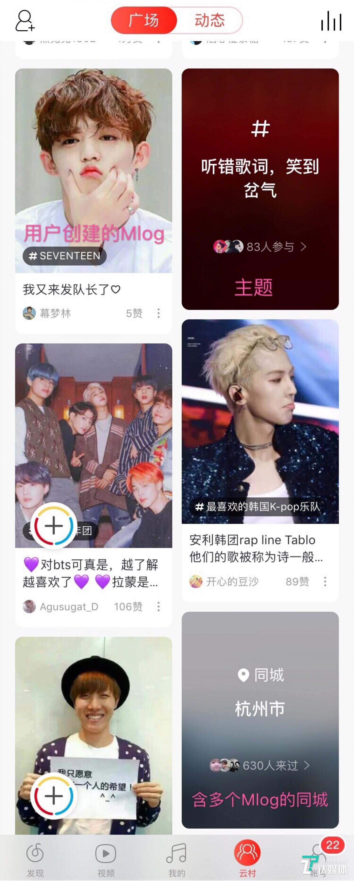 钛媒体查看了同事的云村社区,发现我们的云村社区广场内容都不同,说明网易云音乐算法会根据用户常听曲风来推荐相关Mlog。